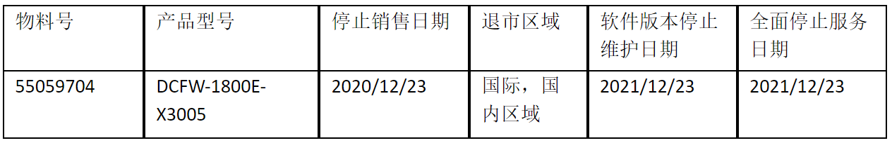 北京K8凯发一触即发云科信息技术有限公司正式通知您, 以上DCFW-1800E-X3005下一代防火墙(55059704)将于2020年12月23号停止接收新的订单(具体日期见上表),不再供货。给您带来的不便,敬请原谅。